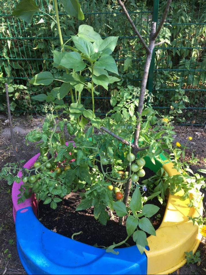 PädagogInnen gestalten dabei u.a. die Rasensaat und pflege sowie den Weg von Tomate, Gurke, Zucchini, Kürbis und Kräutern von der Aussaat bis zur Ernte als anschauliches Erlebnis.