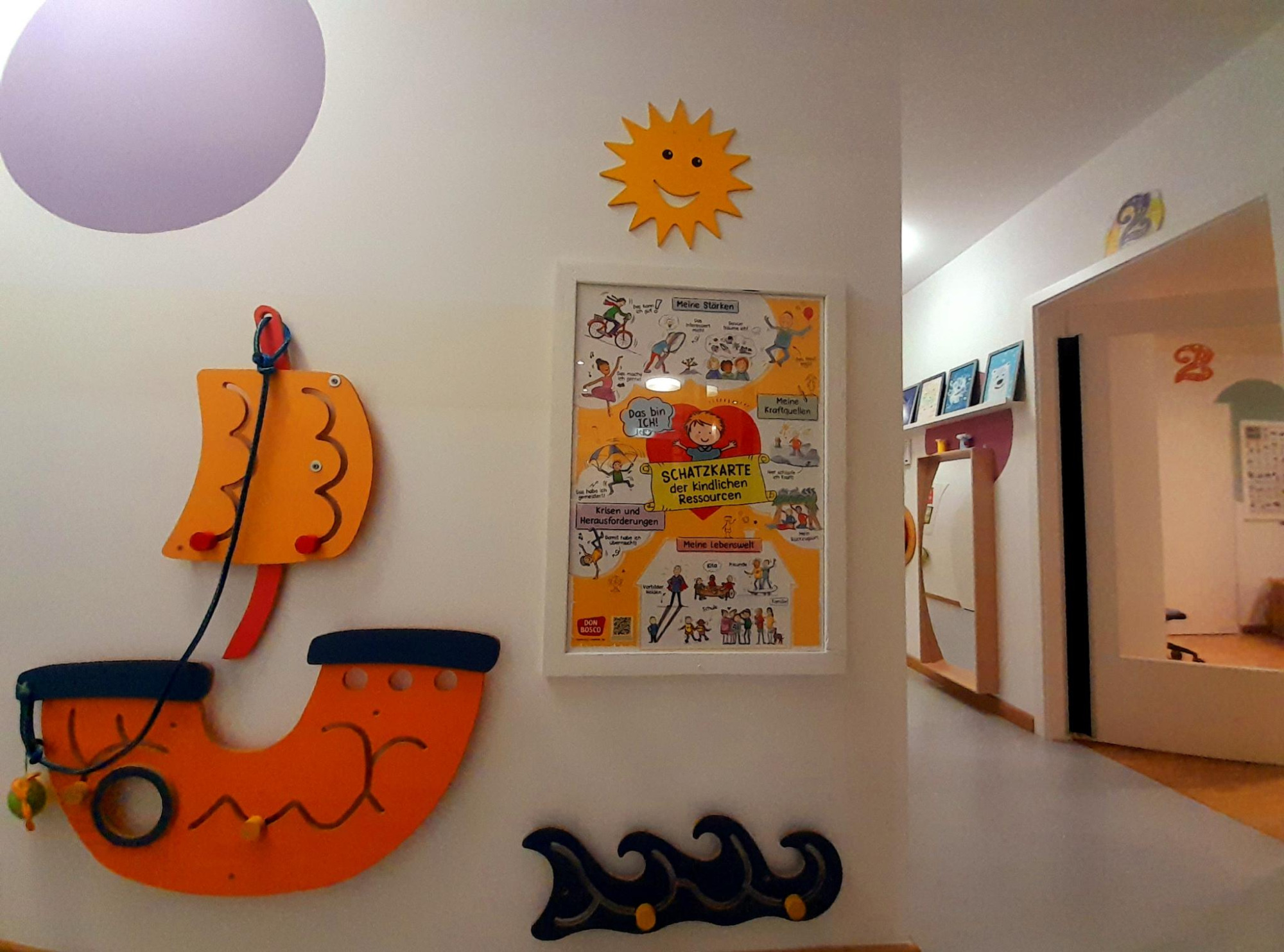 Darüber hinaus suchen zweimal wöchentlich eine - jeweils externe - Ergotherapeutin, Logopädin und Physiotherapeutin sowie eine Sehfrühförderin unsere Kita auf und führen bei denjenigen Kindern entsprechende Therapien durch, die ärztlich verordnet worden sind.